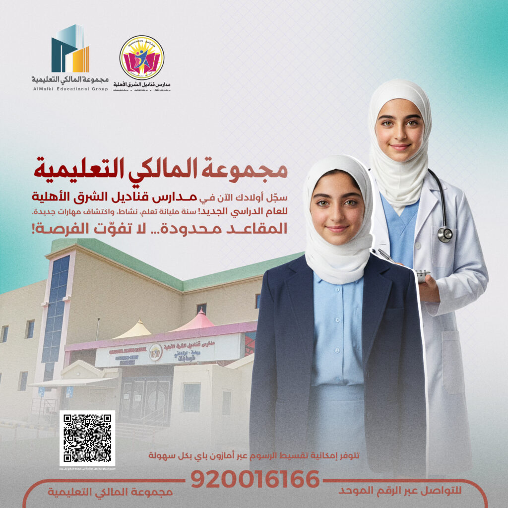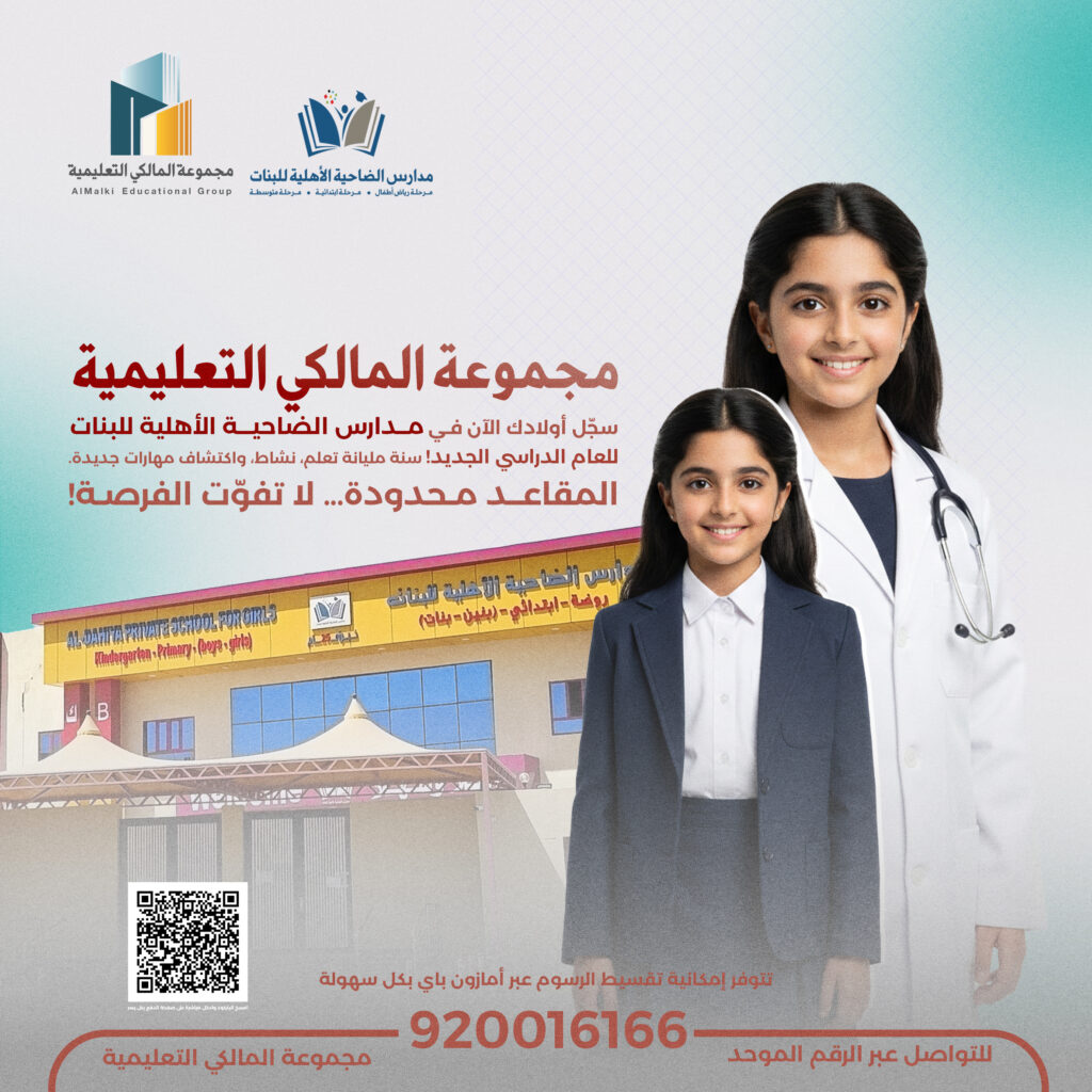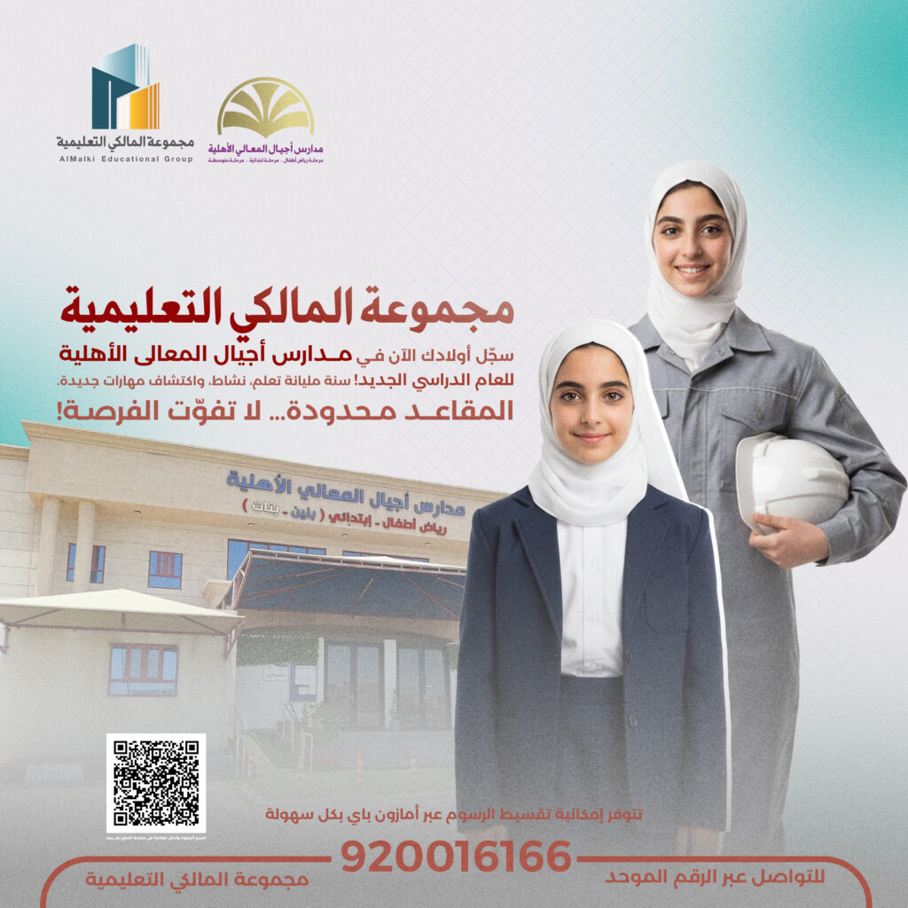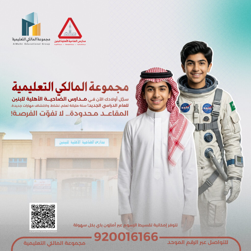 مدارس المالكي التعليمية انضم إلينا لرحلة تعليمية ملهمة، حيث الإبداع يلتقي بالتكنولوجيا. ابن مستقبلك وسط بيئة تعليمية محفزة ومعلمين متخصصين. انضم اليوم وابن طريقك نحو النجاح